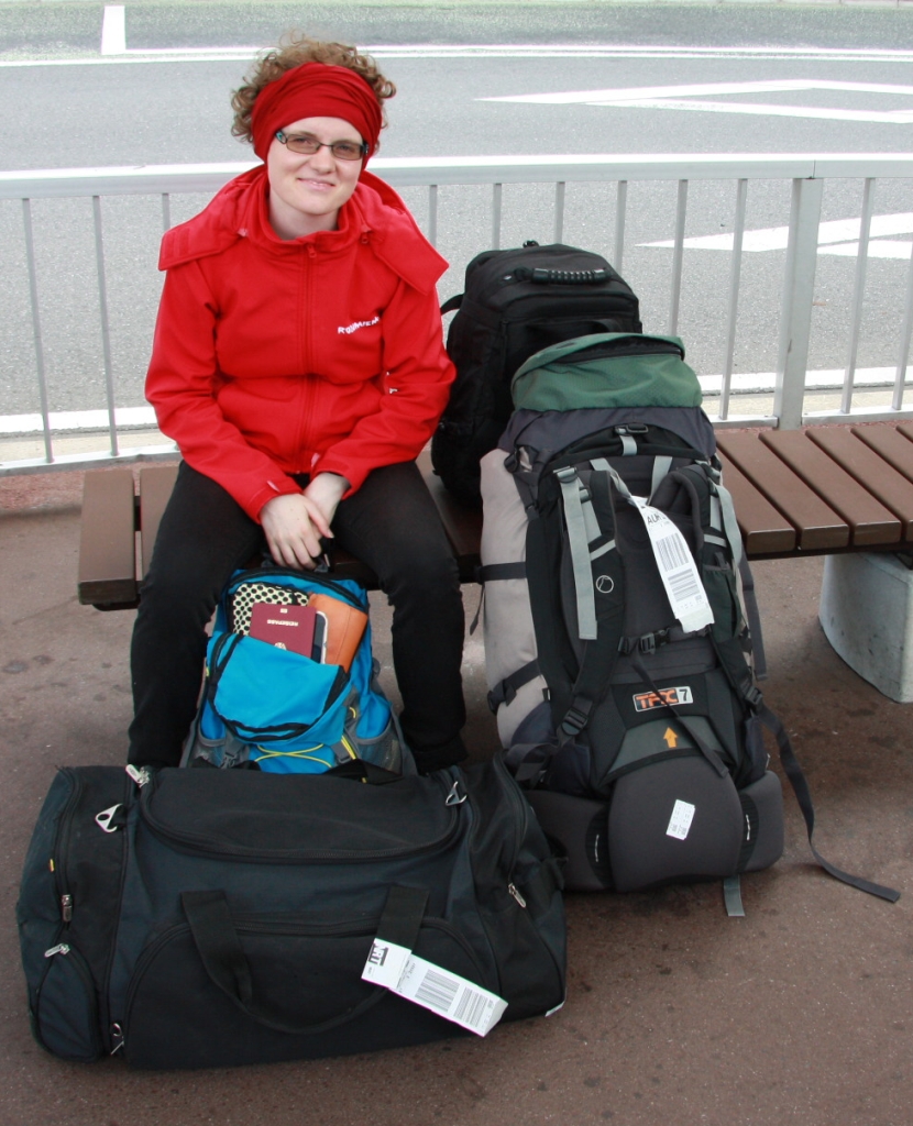 Bei der Platzvergabe konnten wir dieses Mal nicht ganz auf unser Glück zählen: Keine freien Fensterplätze mehr, obwohl wir uns schon offiziell bei der Stewardess um die eine freie Bank beworben hatten und uns die auch zugesichert worden war. Zu doof, wenn andere nicht auf den Gedanken kommen zu fragen. So blieben wir dann also auf der (vollbesetzten) Mittelbank. Dummerweise auch noch neben dem Notausgang. So ganz dicht war der nicht – hat den ganzen Flug über gezogen und draußen waren es nicht mehr die 32°C aus Abu Dhabi. Da hilft dann nur einwickeln in die Decken, die Etihad aber immer dankenswerterweise bereitstellt. So kommt man in den 9.5h Flug sogar noch zu 3-4h Schlaf zwischen den Mahlzeiten. Also wenn man nicht im Schlaf seinen Wasserbecher etwas zu sehr belastet und so im Flug noch mit der Wäsche der Decke und so mancher Kleidungsstücke beginnt. So Leute soll es geben. Habe ich gehört. Selbst habe ich geschlafen.