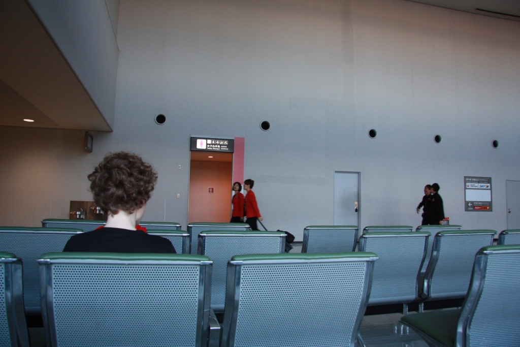 Saturday, September 28th, 2013also ein Flug. Weil’s doch so schön war. Nur ein Kurzer. Zum Abtrainieren. Aber um im Takt zu bleiben, fliegen wir 07:30 Uhr los. Also wieder früh raus und zurück zum Flughafen.Wir waren uns nicht ganz sicher, ob diese Konstellation so Absicht war, aber dort, wo sich der Weg der Stewardessen zum Terminal mit dem Weg zum Damenklo kreuzt, stand eine Reihe von Bänken, wie ein Kinosaal. Wie gesagt, ob das Zufall ist …
