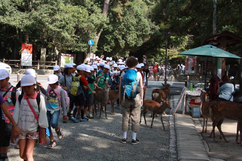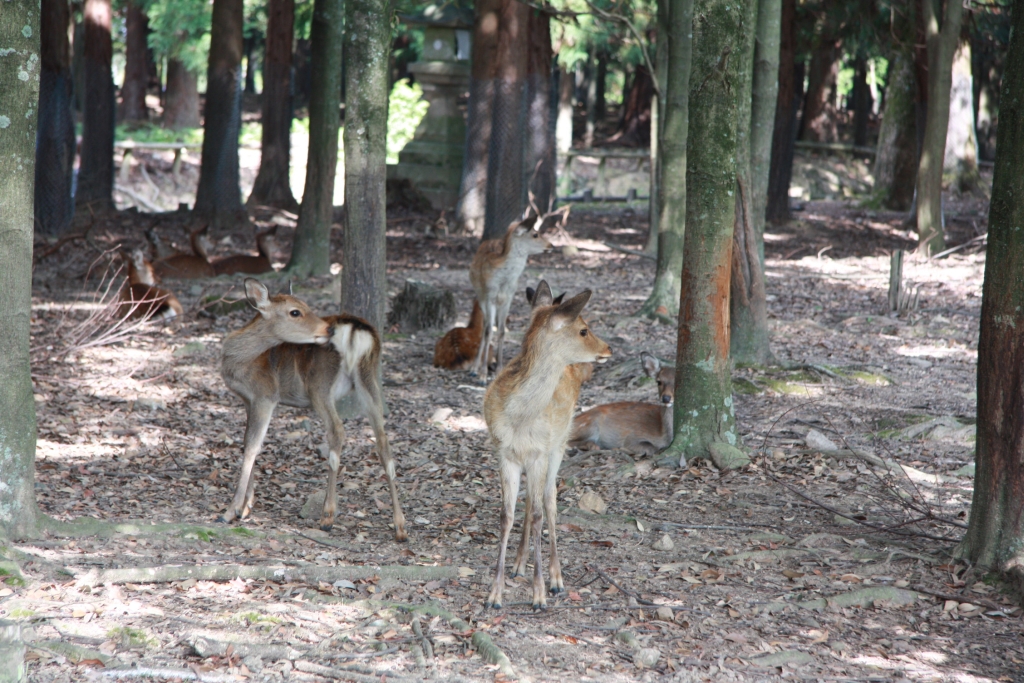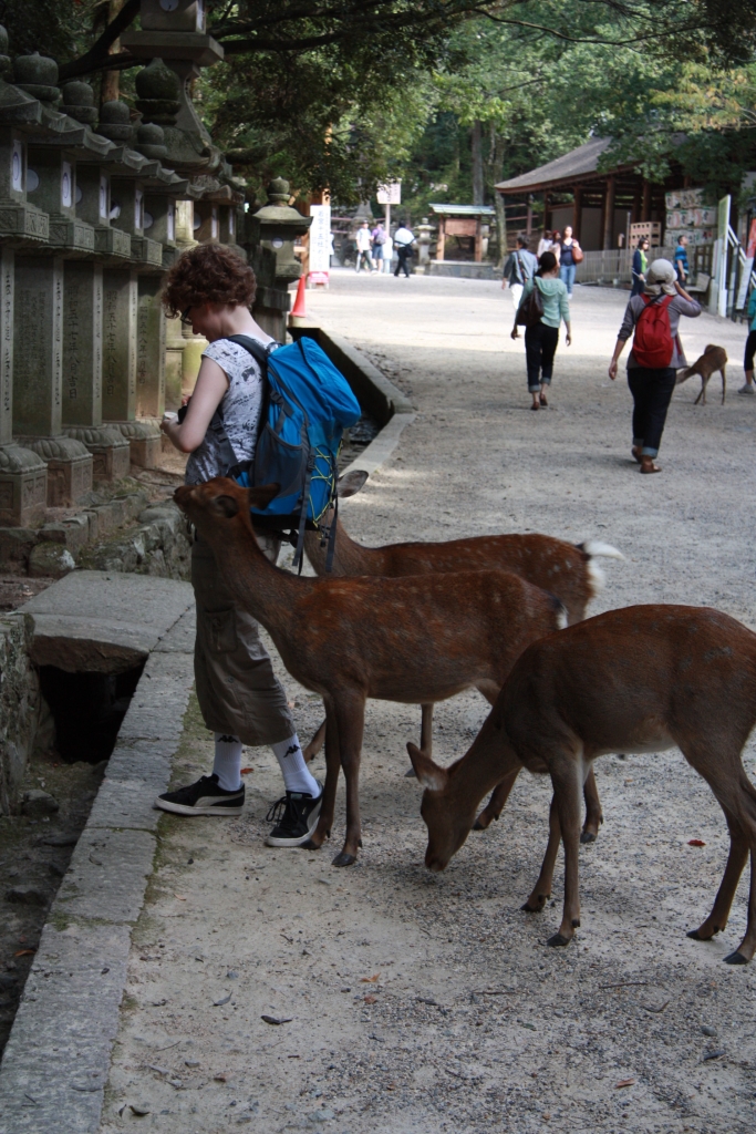 Die andere Seite der Stadt hingegen besitzt einen recht großen Park, der sich einen Berg hinauf erstreckt und (wie sollte es anders sein) diverse Tempel und Schreine beherbergt. Soviel zum offiziellen Programm. Daneben gibt es in Nara noch so ein kleines Detail, das die Fortbewegung insgesamt leicht verlangsamt: