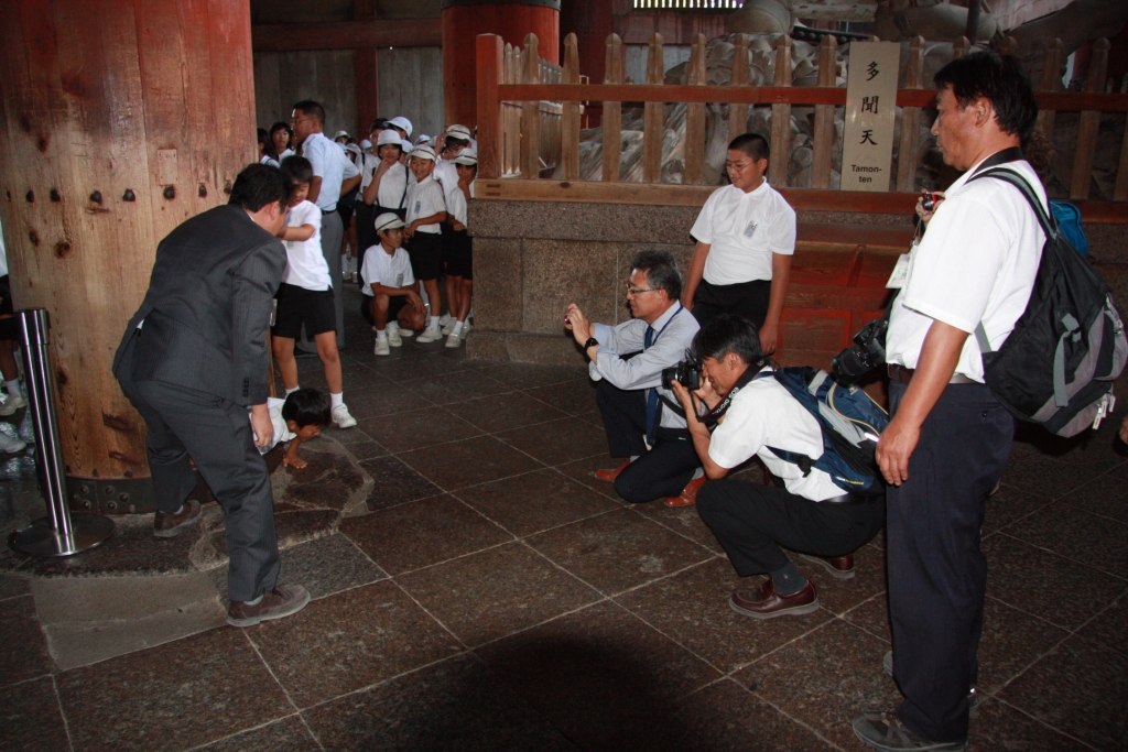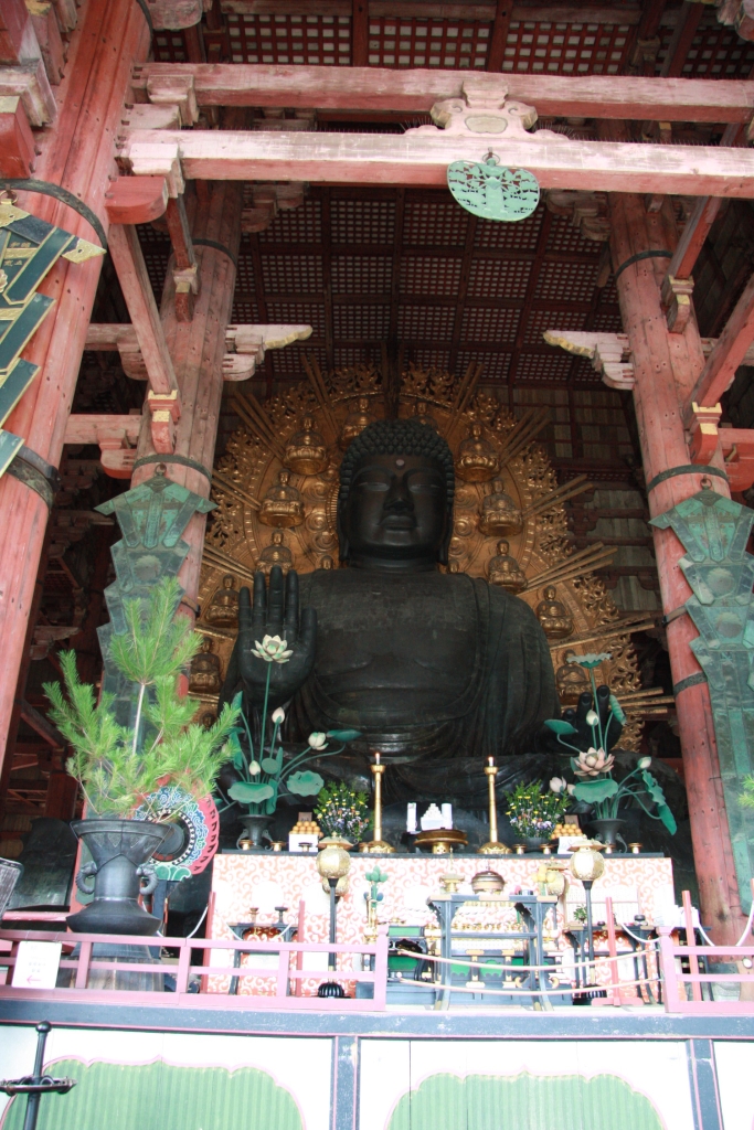 Falls sich jemand noch an den letzten Besuch meinerseits hier in Nara erinnert, dem sollte jetzt auch das Loch in einer Säule in den Sinn kommen. Wenn man durchkriecht, wird einem die Erleuchtung versprochen. Dummerweise wird nicht gesagt, wann, und zudem gibt es dann noch die Sache mit der Wiedergeburt. Um sicher zu gehen und auch Katharina in selbigen Genuss kommen zu lassen, wollten wir die Aktion natürlich dieses Mal wiederholen. Tja “wollen”. Man erinnere sich an die Schulklassen. Viele kleine Kinder, die wunderbar durch irgendwelche Löcher passen. Die kann man da dann auch im Akkord durchschleusen. Mit Hilfestellung: Einer schiebt hinten an und ein anderer zieht vorne, dann ein kurzes Photo für die Eltern und der/die nächste ist dran. Da blieb dann irgendwie keine Zeit für uns.