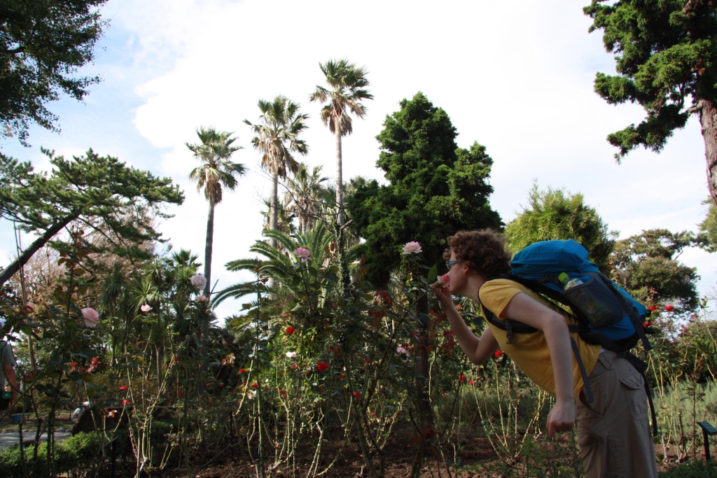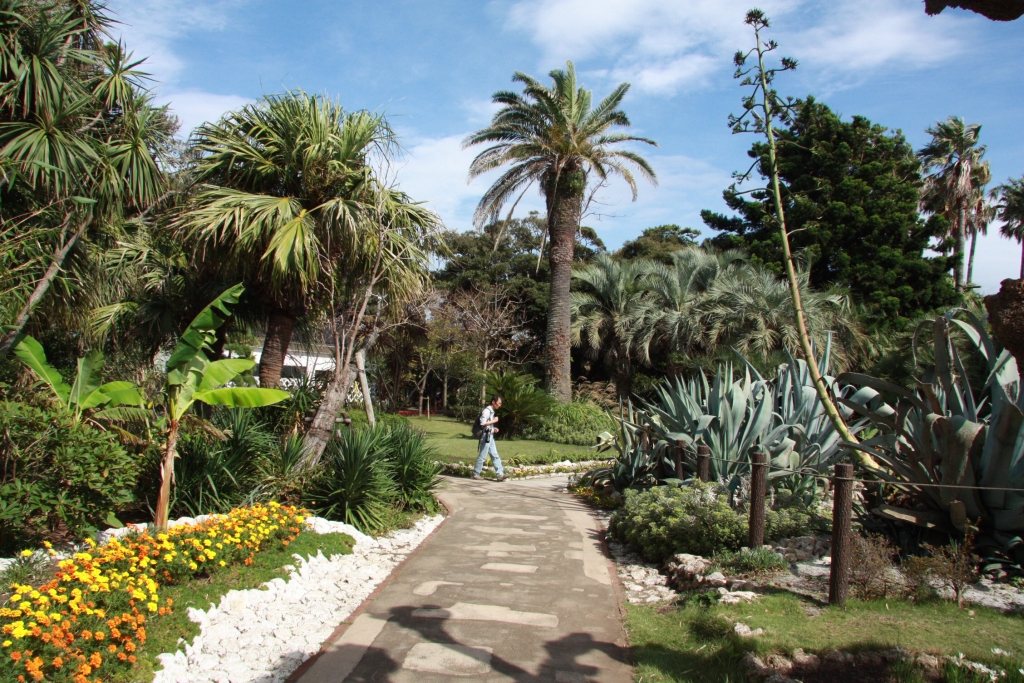 Weiter oben auf dem Berg der Insel gibt es dann einen Garten. Diesmal keinen explizit japanischen, sondern eher westlich. Viele Rosenstöcke, dazu Palmen und Kakteen. Achja – das mit dem Wind wurde nicht unbedingt weniger.