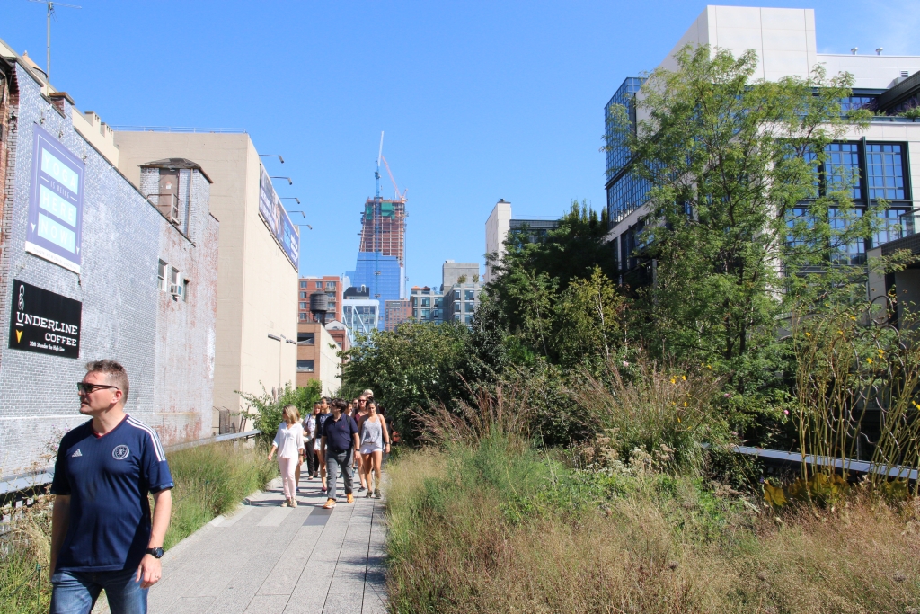 Immerhin gibt es noch Sachen, die weder Eintrittsgeld noch Reservierung vorraussetzen. Die High Line zB. Wenn ich das jetzt noch richtig im Kopf habe, war das bis Mitte letzten Jahrhunderts eine reguläre Bahnstrecke, aber als es dann mit Industrie und Warentransport nicht mehr so viel zu holen gab, wurde sie eingestellt. Irgendwann hat dann jemand Zuständiges sich Gedanken gemacht (oder machen lassen), wie man das Gelände denn noch so nutzen könnte und heute ist es nun ein Park, der sich in ein paar Metern Höhe durch die Häuser schlengelt.