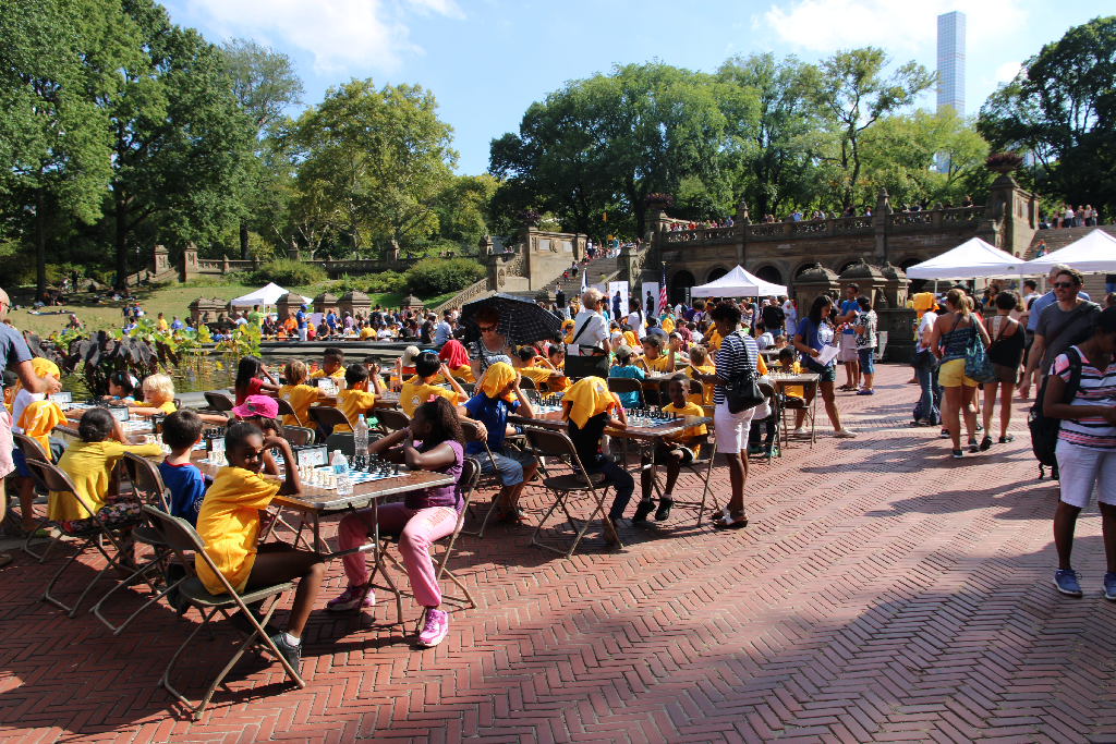 Dann kann man sich zum Essen im Central Park treffen und Leute gucken. Unter anderem Leute die Schach spielen. Viele Leute. Ok, gehört sich für so eine Schulmeisterschaft auch so. Allerdings frage ich mich dann, wieso wir bei sowas in Deutschland immer kaum 50 Leute waren und man uns in irgendwelche Turnhallen verfrachtet hat. Von Bühne und sowas mal ganz zu schweigen …