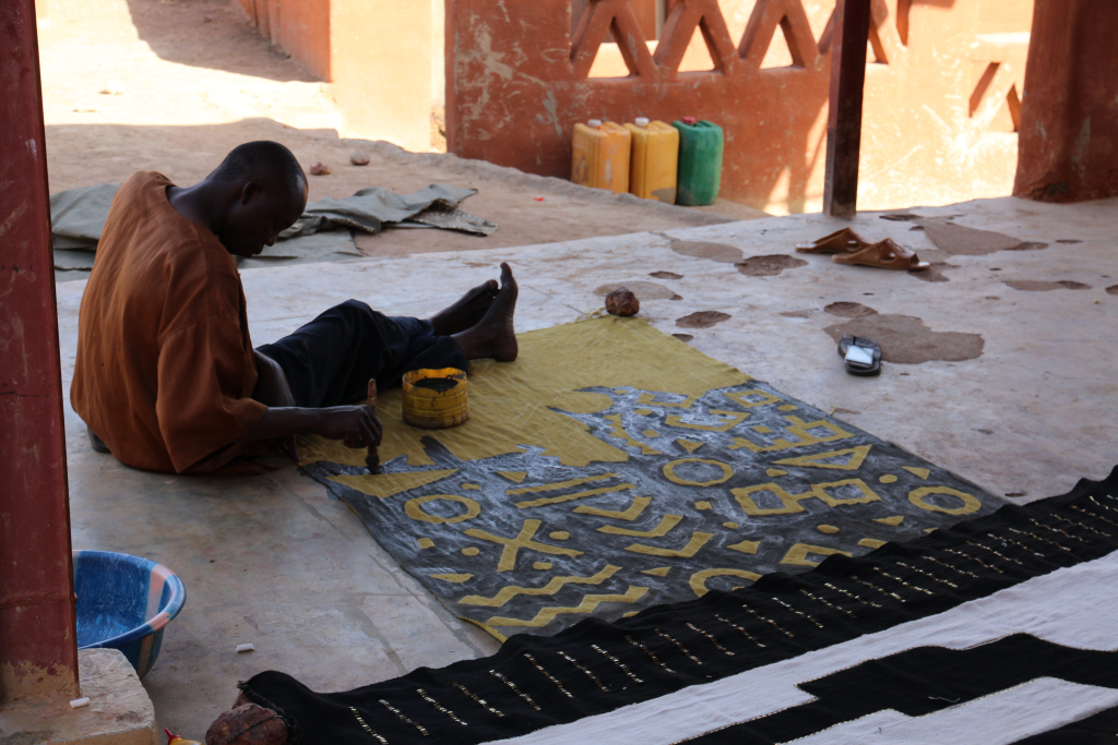 Wofür Segou ansonsten auch noch recht bekannt ist, ist seine Stofffärberei. Da haben wir uns natürlich auch zwei Werkstätten zu angeschaut. Einmal etwas, was von lokalen Künstlern gegründet und aufgebaut wurde und einmal etwas, was wohl ursprünglich mal für die Touris gedacht war. Letzteres hatte dann nämlich auch gleich noch die Möglichkeit das alles doch auch gleich noch einmal selbst auszuprobieren.