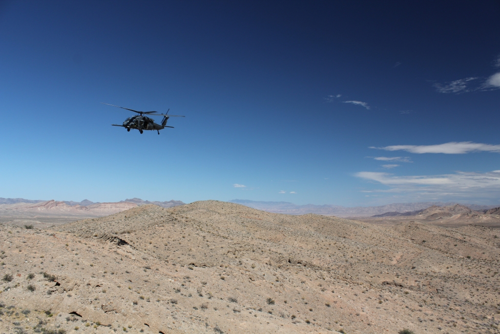 Nun gibt es auf dem Weg auch immer wieder Mal Anlass zum Halten und sich Umschauen. Bei einer dieser Gelegenheit haben wir uns nicht nur umgeschaut, sondern wurden auch ausgiebig betrachtet: Während wir da so umhersteifeln, dreht über uns ein Militärhubschrauber seine Runden. Ein Teil dieser Runden führt irgendwie auch explizit über uns. So ganz ohne mögliche Deckung wirkt das irgendwie komisch, zumal der Hubschrauber aus unserer Perspektive voll bewaffnet aussah. Wenn man uns hier nicht mag, hätte man das auch anders sagen können …