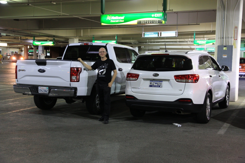 In Las Vegas dann auf zum Mietwagen. Der Manager “Nehmt den weißen da hinten.” – “Den Pickup?” – “Ja …”.