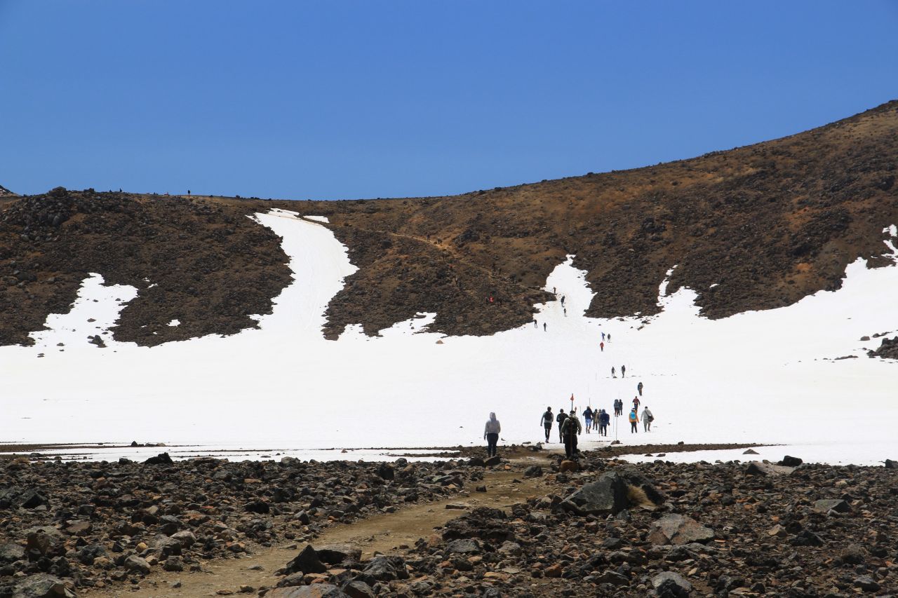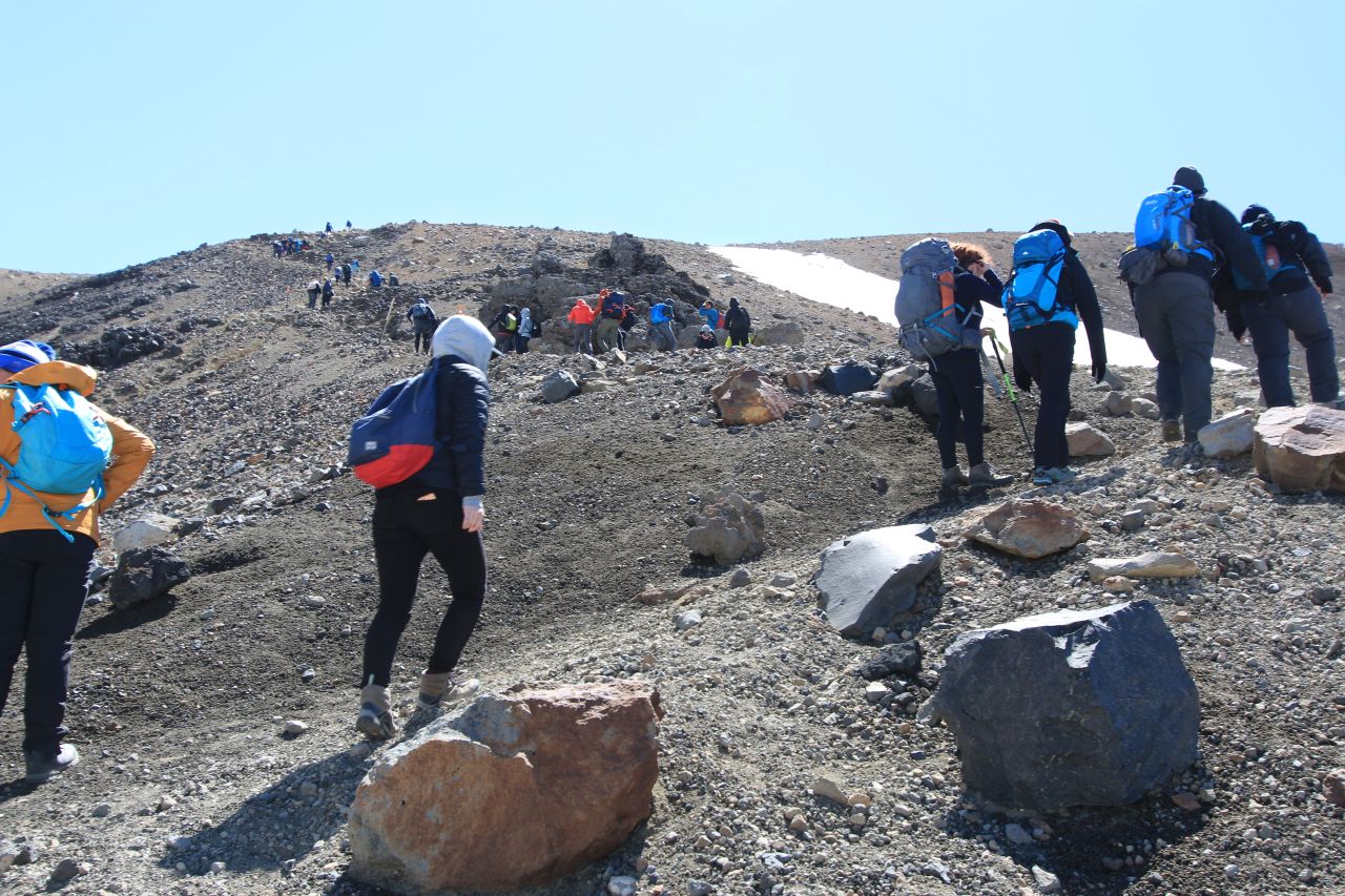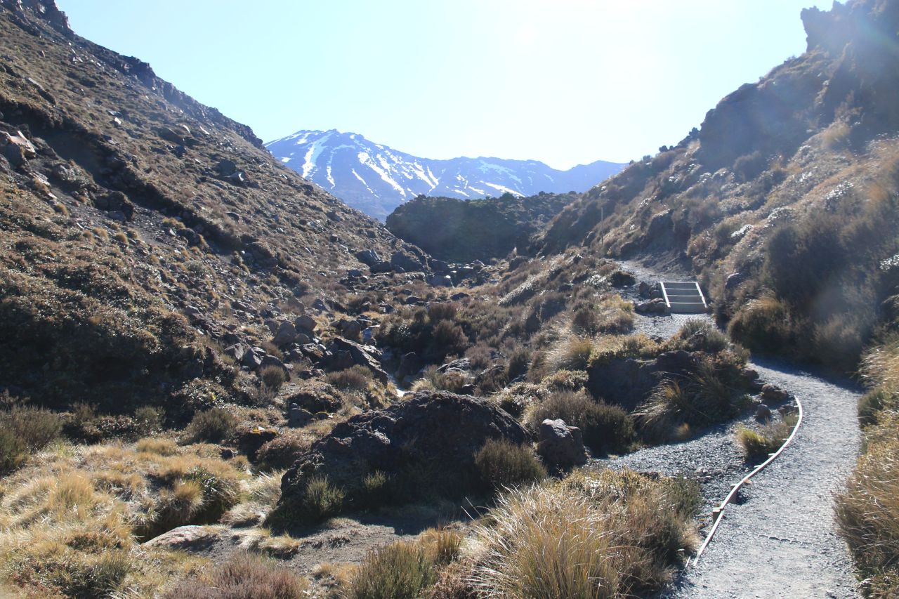 Aber nun zum eigentlichen Ziel des Ausflugs: dem Tongariro Alpine Crossing. Irgendwie hatte ich da schon so ein leicht mulmiges Gefühl bei den ganzen Warnungen, die man im Internet so fand. Fing aber auch wieder ganz harmlos an.