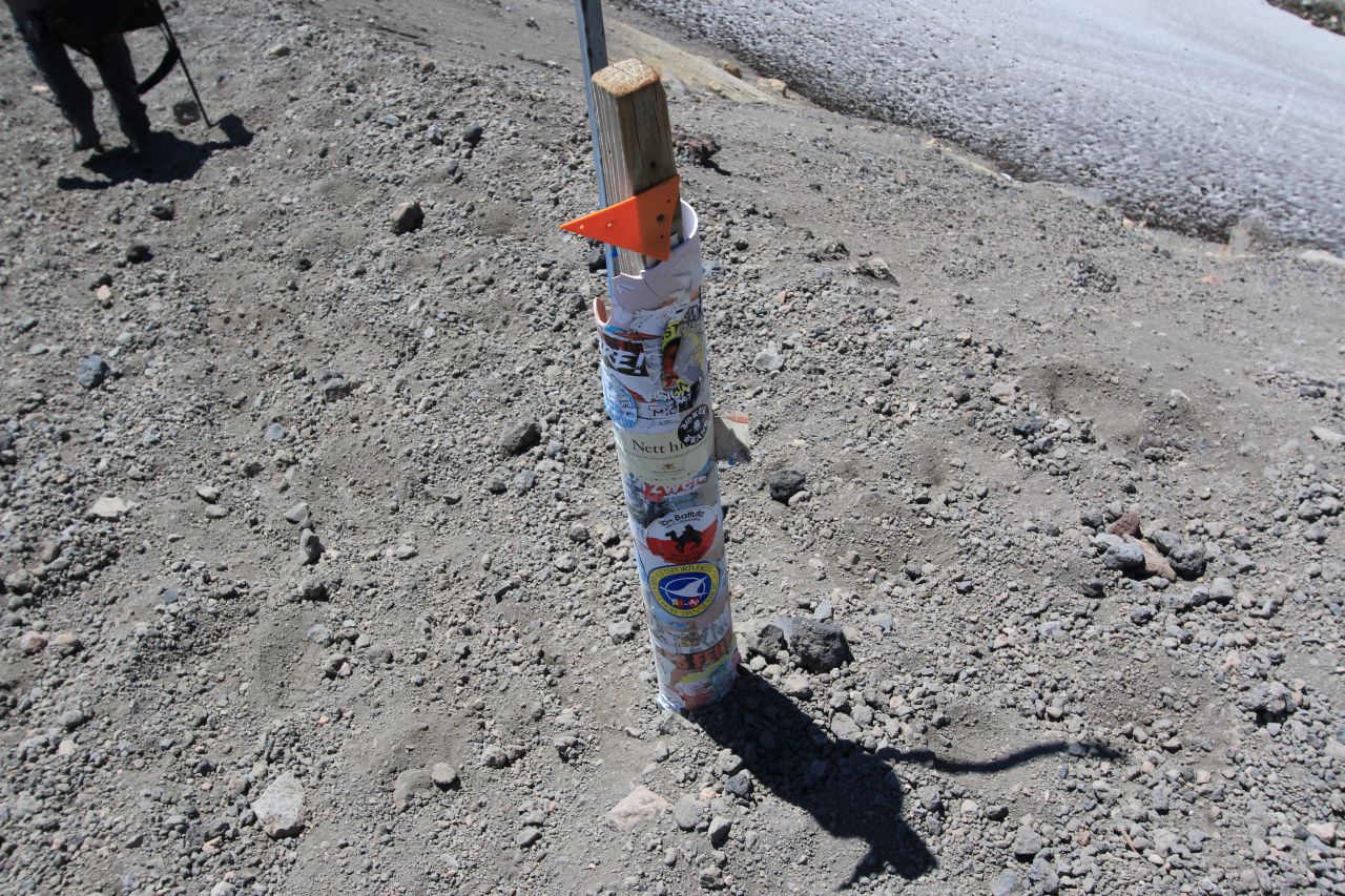Auf dem Abstieg dann auch noch dieser Pfosten. Man beachte das gelbliche Schild ca auf halber Höhe. Ja, war ich.