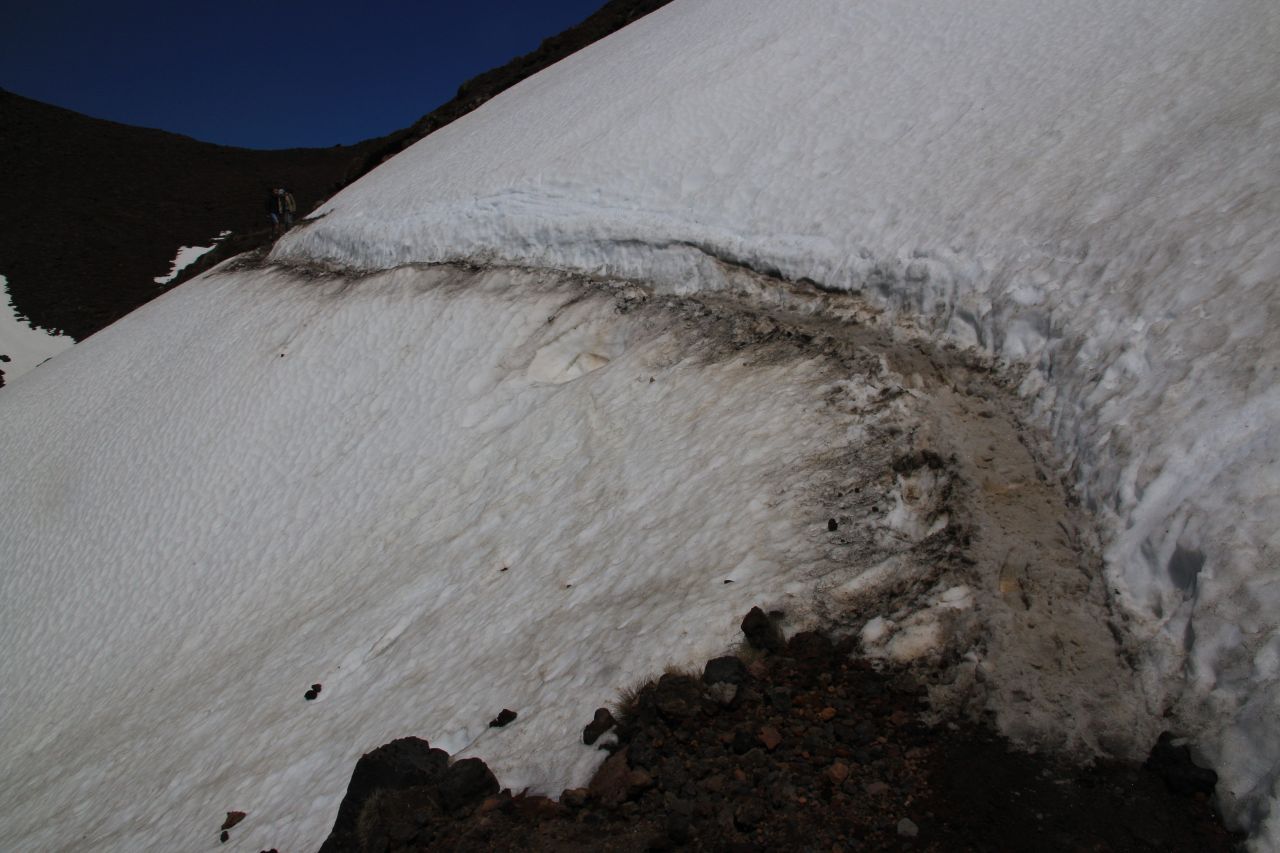 Noch ein letzter kurzer Anstieg und ein Schneefeld, …