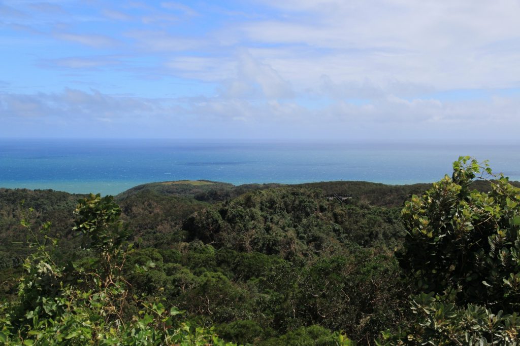 Also Südspitze abgehakt, kann man also die Ostküste wieder etwas hoch. Da gibt es laut Karte auch noch Sachen zu sehen. Übrigens kommt der wird hier tendenziell von Osten und wird zum Abend auch etwas stärker. Macht sich auf zwei Arten bemerkbar: an den Aussichtspunkten sind die Leute sich etwas zurückhaltender an den doch recht stellen Klippen. Und auf den Wegen dazwischen merkt man dann doch, das so ein Roller anderes auf Seitenwind reagiert als ein Auto. Aber gut, muss man ja auch man üben.