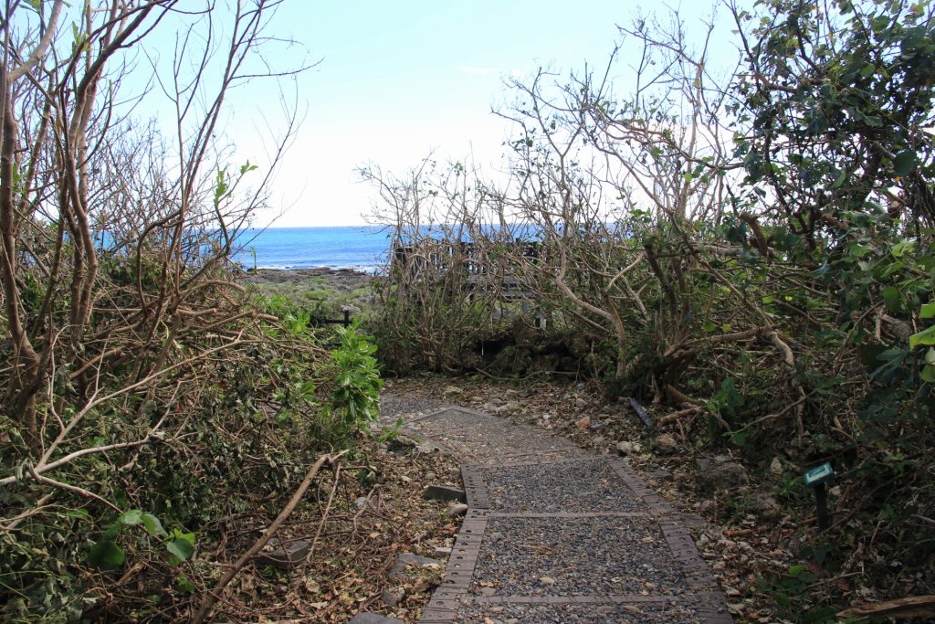 Also auf zum ersten Berganstieg, unterwegs noch fast einen sagen überfahren, der aus dem Gebüsch sprang, und schon ist man beim ersten Tagespunkt: Kenting Recreational Forest. Und bei dem “beim” bleibt es auch. Der Park ist noch wegen Taifun-Folgen gesperrt. Nujo, schade, aber es kommen ja noch mehr Ziele. Also weiter zum Sheding Park. Immerhin niemand da, der sagt das hier zu wäre. Aber so ein verdächtiges Absperrband mit einem Schild in roter Schrift. Aber gut dass ich kein Chinesisch kann und von hinter dem Band mir Leute entgegen kommen. Also durch und los. Ok, das Schild hatte Sinn – nach 200m ist der Weg dann endgültig so zu, das man nicht mehr weiter kommt. Unschöner start in den Tag. Aber immerhin bin ich hier nicht noch gelaufen.