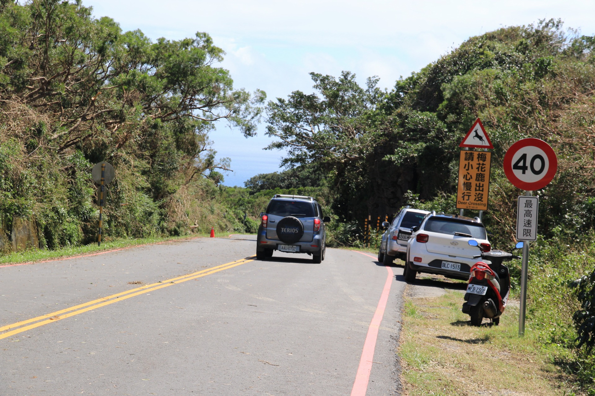 Also auf zum ersten Berganstieg, unterwegs noch fast einen sagen überfahren, der aus dem Gebüsch sprang, und schon ist man beim ersten Tagespunkt: Kenting Recreational Forest. Und bei dem “beim” bleibt es auch. Der Park ist noch wegen Taifun-Folgen gesperrt. Nujo, schade, aber es kommen ja noch mehr Ziele. Also weiter zum Sheding Park. Immerhin niemand da, der sagt das hier zu wäre. Aber so ein verdächtiges Absperrband mit einem Schild in roter Schrift. Aber gut dass ich kein Chinesisch kann und von hinter dem Band mir Leute entgegen kommen. Also durch und los. Ok, das Schild hatte Sinn – nach 200m ist der Weg dann endgültig so zu, das man nicht mehr weiter kommt. Unschöner start in den Tag. Aber immerhin bin ich hier nicht noch gelaufen.