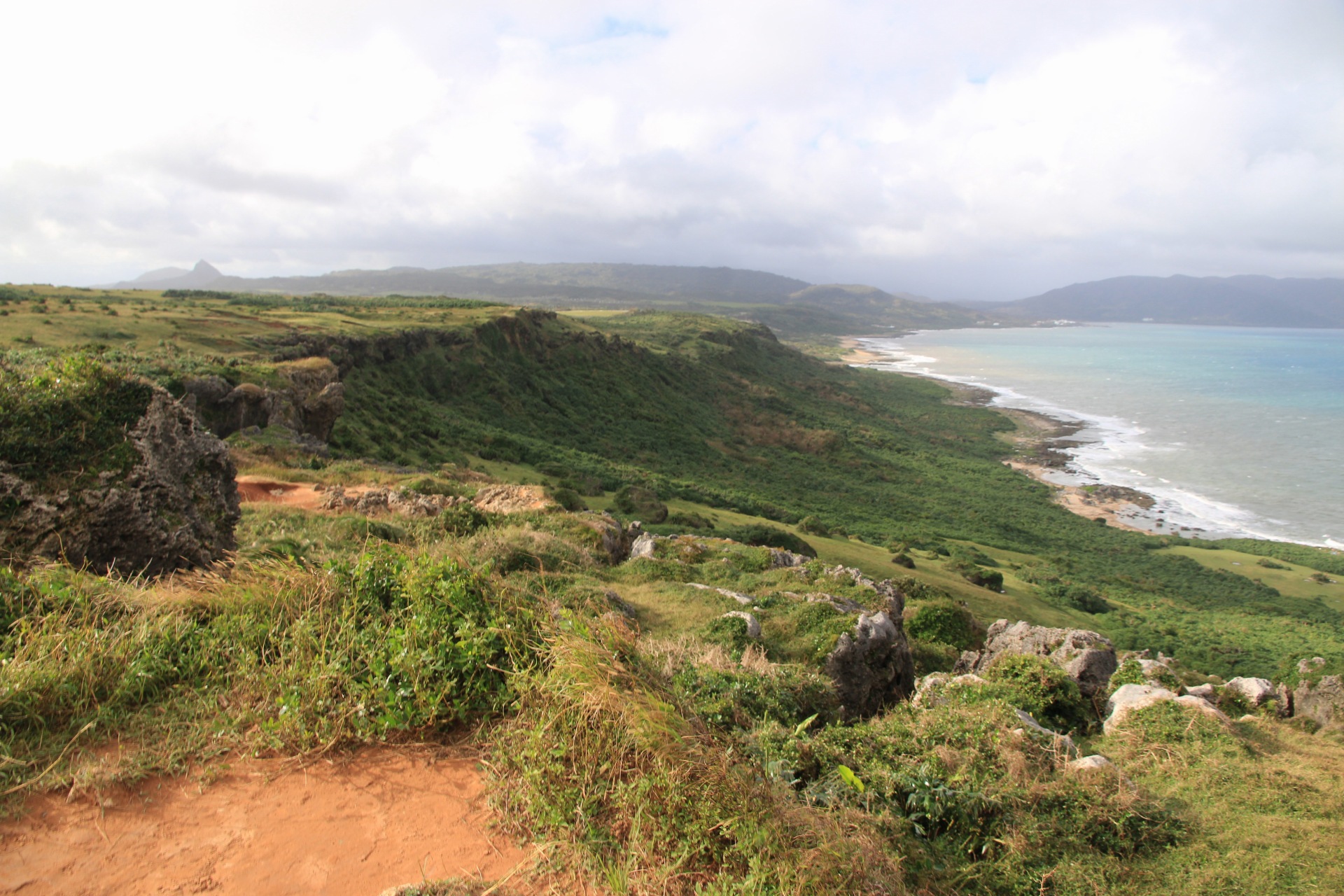 Also Südspitze abgehakt, kann man also die Ostküste wieder etwas hoch. Da gibt es laut Karte auch noch Sachen zu sehen. Übrigens kommt der wird hier tendenziell von Osten und wird zum Abend auch etwas stärker. Macht sich auf zwei Arten bemerkbar: an den Aussichtspunkten sind die Leute sich etwas zurückhaltender an den doch recht stellen Klippen. Und auf den Wegen dazwischen merkt man dann doch, das so ein Roller anderes auf Seitenwind reagiert als ein Auto. Aber gut, muss man ja auch man üben.