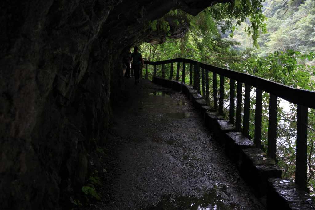Während der erste Pfad so nicht geplant war, stand der zweite schon auf den Programm. Der Ausblick ist schon nett, wenn man ihn denn Mal hat. Ich würde sagen die Hälfte des Weges führt durch irgendwelche Tunnel, die zumeist nicht ausgeleuchtet sind. Und so sieht man dann einzelne Handylampen auch ihren Weg durch die Dunkelheit bahnen. Die Hauptattraktion dieses Pfades mache sich “water curtain”. Das Internet meinte schon, das man sich dazu dein Regencape holen solle. Hab ich auch gemacht. Dummerweise nur war ich zufällig gerade Recht einsam auf dem Weg, als es zum wesentlichen Tunnel kam. So bin ich halt ohne rein und stellte dann erst mit zunehmendem Fortschritt deine gewisse Feuchte von oben fest. Das war aber dann der Zeitpunkt zu dem ich irgendwie wieder Gesellschaft gefunden hatte und, nachdem der Weg kaum für mich alleine Platz bot (der Rest des Tunnels wurde durch einen nach zwecks Wasserabfluss eingenommen, war umdrehen eher keine Option. Naja, ist auch nur Wasser – kaltes Wasser. Ich hätte mir das ganze ja auch eigentlich eher am Ausgang vorgestellt, es spielte sich aber in selbigem an. Von daher ist das mit dem Photos hier auch schwerer. Den Rückweg habe ich dann übrigens mit Regenschirm angetreten. Das ging auch und ist nicht ganz so eklig wie so ein Cape.