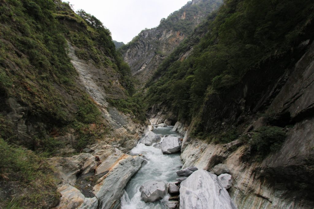 Tags drauf wurde das Wetter zumindest etwas besser (wieder alles richtig gemacht?) und ich konnte zum Hauptziel dieses Zwischenstopps: Taroko National Park. Also jedenfalls dachte ich, dass ich das könnte. Der Bus war leicht anderer Meinung. Der warf mich nämlich schon am Parkeingang raus, wo ich doch eigentlich am anderen Ende starten sollte und mich dann wieder bergab voranarbeiten. Einige andere (inklusive vermeintliche Einheimische) waren aber ebenso verwirrt. Erst nach 45min wurde klar, das der eigentlich angezeigte andere Bus, gar nicht kommen würde, und es nur ein halbes Dutzend Busse über den ganzen Tag verteilt geben sollte. Der nächste davon auch wieder 1.5h später.