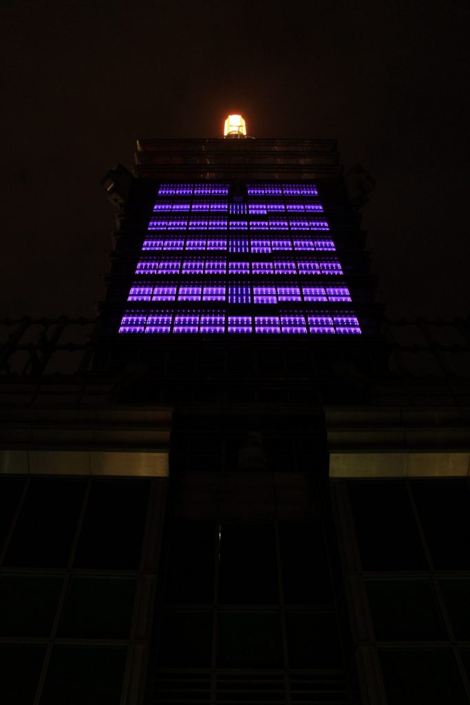 Womit wir dann auch noch zum Taipei 101 kämen. Laut Selbstauskunft das 10. höchste Gebäude der Welt. Die goldene Kugel ist übrigens zur Dämpfung von Schwingungen da und, weil es geht, hat man daraus auch noch ein paar Maskottchen gemacht. Oben dann noch allerhand Photokulissen, die zwar dankbar angenommen werden, aber das photographieren nach draußen erschweren.