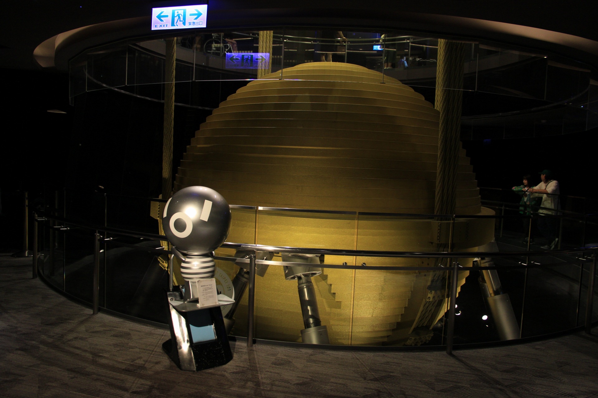 Womit wir dann auch noch zum Taipei 101 kämen. Laut Selbstauskunft das 10. höchste Gebäude der Welt. Die goldene Kugel ist übrigens zur Dämpfung von Schwingungen da und, weil es geht, hat man daraus auch noch ein paar Maskottchen gemacht. Oben dann noch allerhand Photokulissen, die zwar dankbar angenommen werden, aber das photographieren nach draußen erschweren.