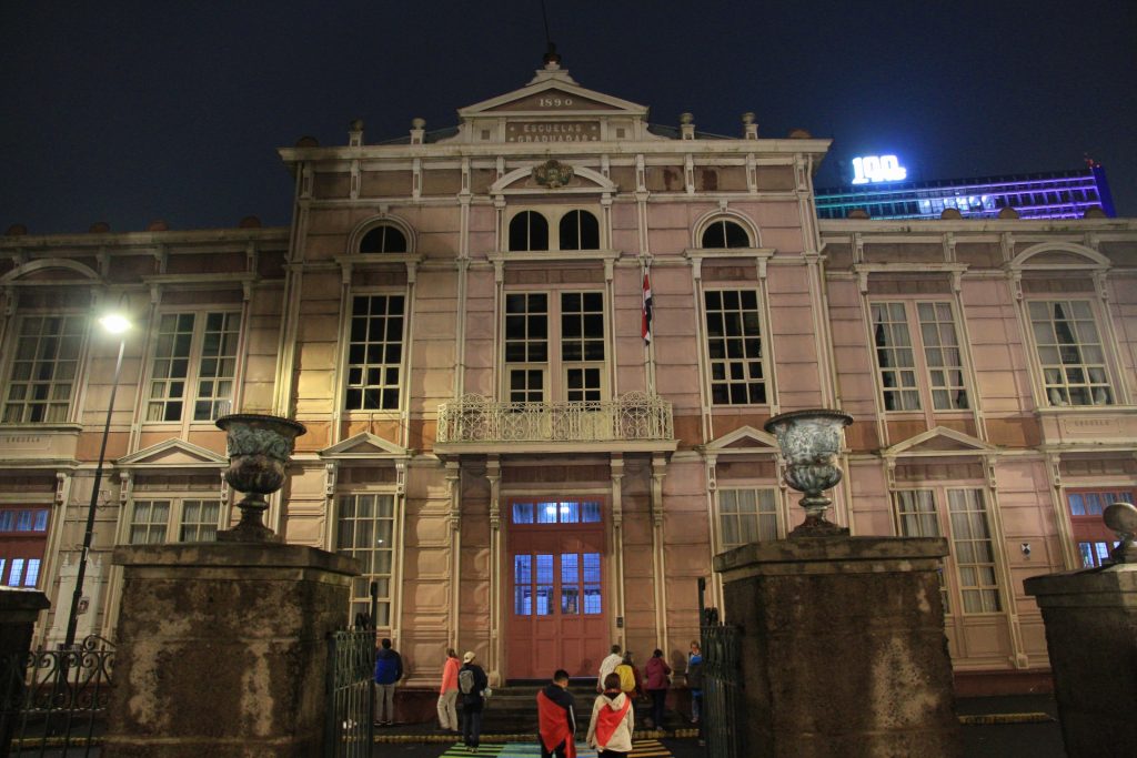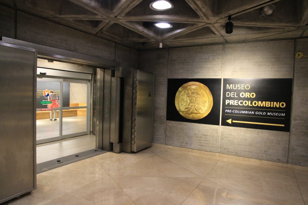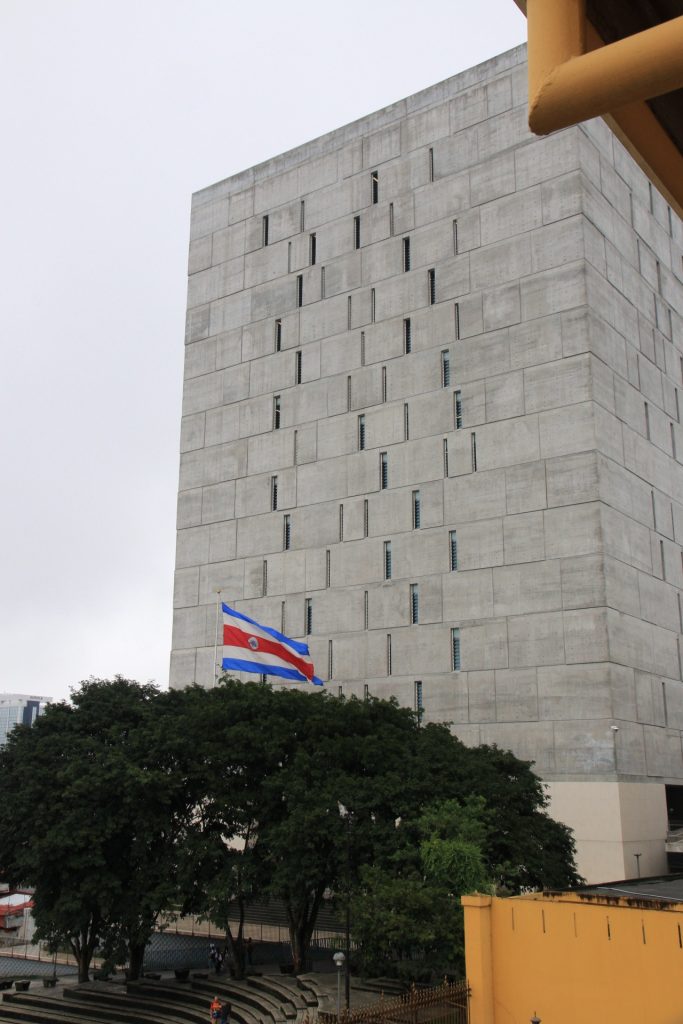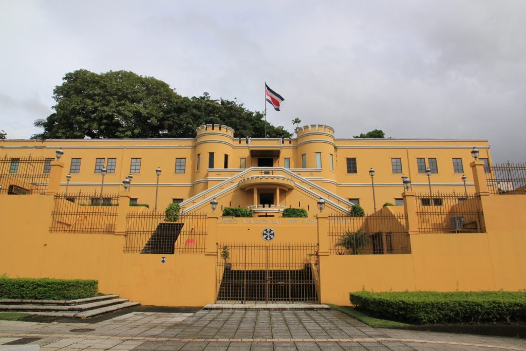 Ein anderes, erwähnenswertes Museum ist noch das Goldmuseum. Von der Notenbank gebaut, um ihre Bestände auszustellen. Es ist aber eher so ein kleiner Abriss der Geschichte in Costa Rica mit insbesondere Bezügen zur Metallverarbeitung. Man beachte die Eingangstüren, die ihre Herkunft nicht verneinen können. Gebaut ist das Gehäude nebenbei auf drei unterirdischen Etagen mit einem Treppenhaus, was sich wie ein Trichter anfühlt. Da es draußen und drüber die ganze Zeit regnet und drinnen Eimer für undichte Stellen stehen, führt das zum nachdenken.