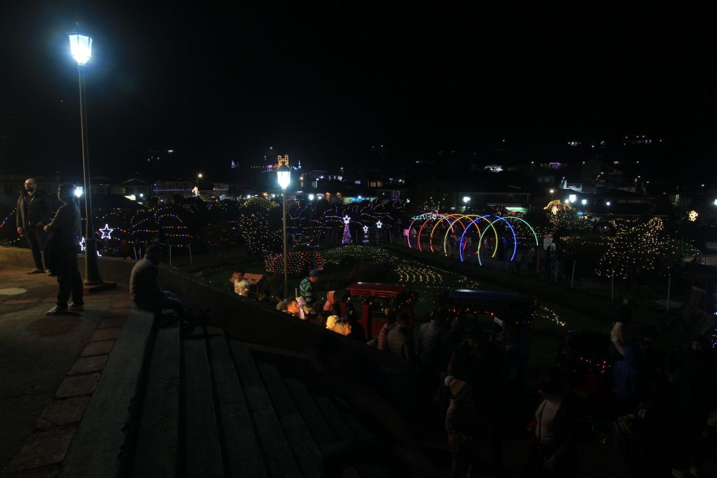 Auf dem Weg liegt dann noch Zapote. Hier gibt es einen netten Park, mit zu Figuren geschnittenen Büschen. Das sieht nicht nur tagsüber ganz nett aus, sondern auch nachts, wenn es wieder als Weihnachtsmarkt beleuchtet wird. Dieses Mal ist das Ganze dann aber deutlich näher am deutschen Weihnachtsmarkt mit Fressbuden (ok, das meiste, was es dort gibt, ist dann doch leicht anders) und einer Hüpfburg für die Kinder (mit geschätzt 50m Schlange davor). Dafür gibt es dann aber auch eine erleuchtete Darstellung der Weihnachtsgeschichte. Wenn man also von den Temperaturen absieht, schon fast wie daheim.