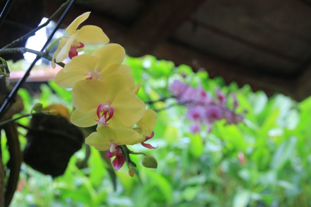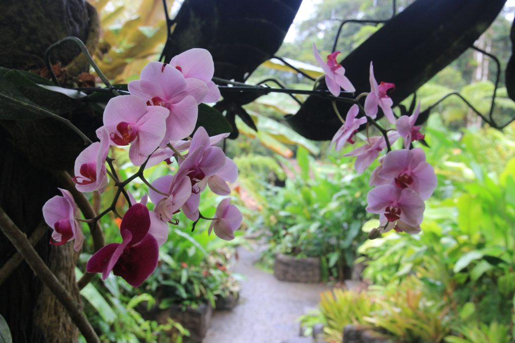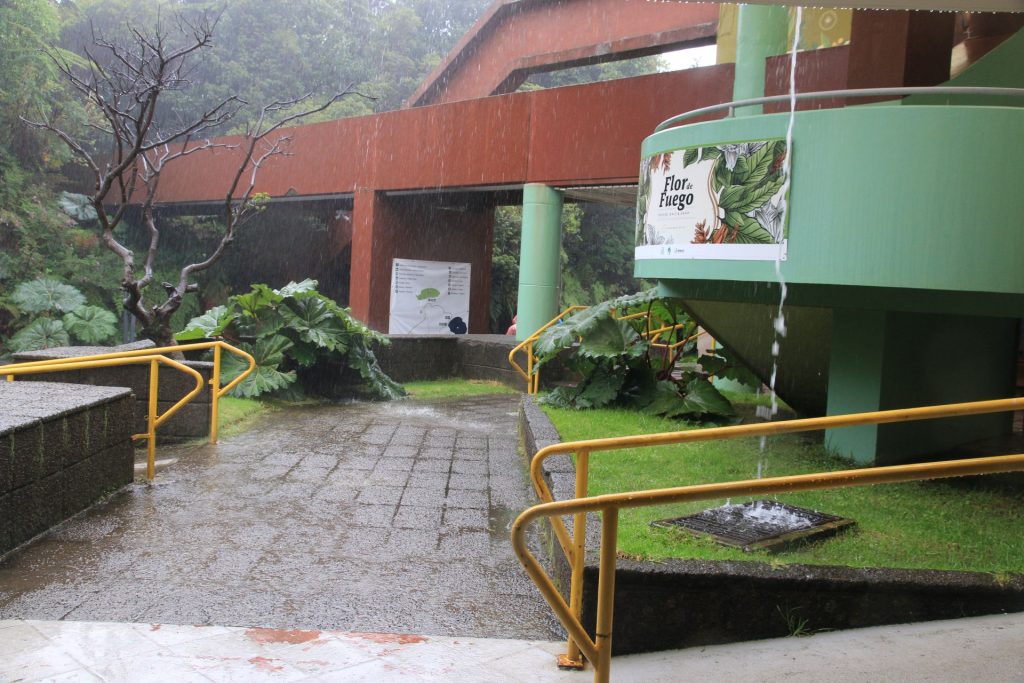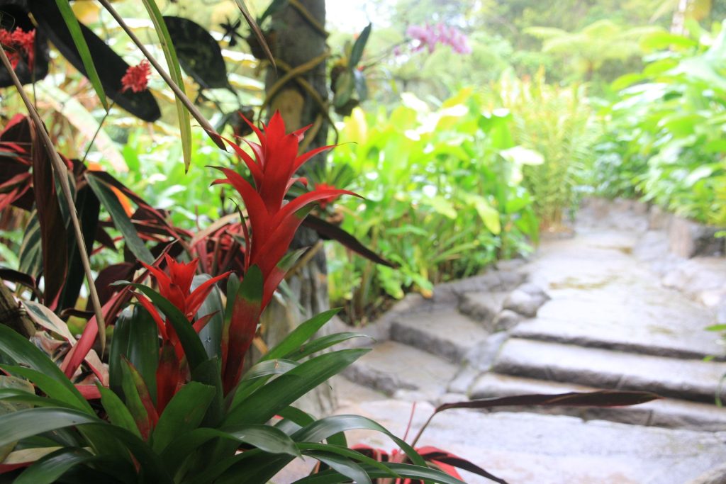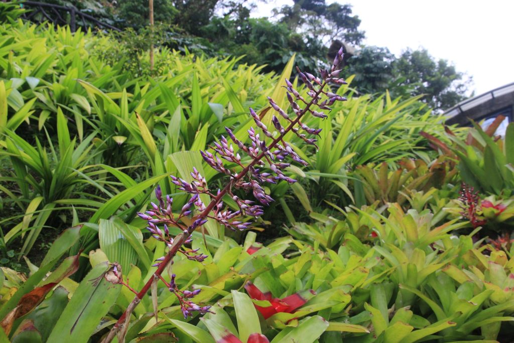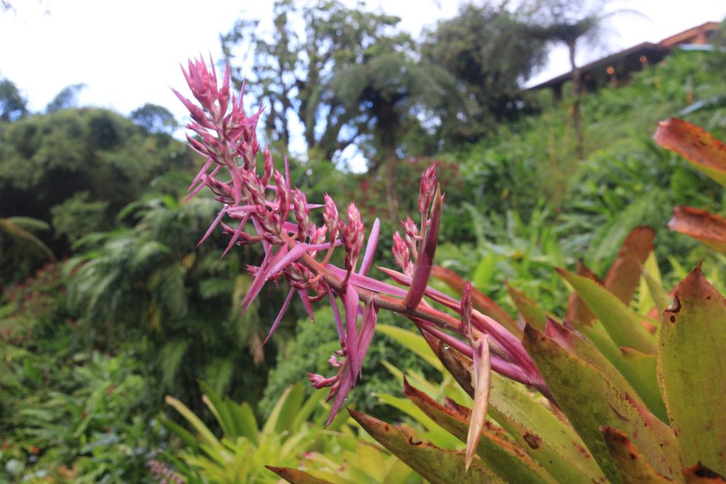 Natürlich ist nicht alles nur Fauna, sondern auch noch diverse Flora. So blüht es dann an verschiedenen Ecken. Die Kolibris hier scheinen sich dann aber doch auf den einfachen Weg zu Essen in Form der Futterstellen zu konzentrieren. An den Blumen habe ich keine gesehen – kann aber auch wieder am Regen gelegen haben. Die Futterstellen waren überdacht.