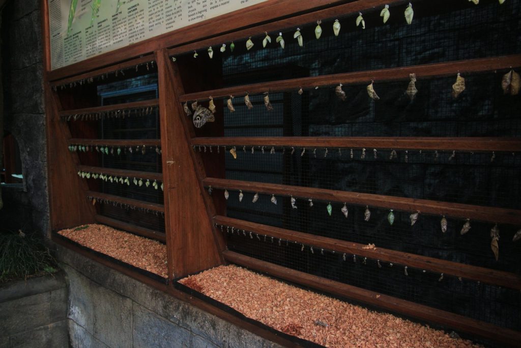Dessen ungeachtet gab es ein Schmetterlingshaus. Auch hier sind nicht alle Tiere gefunden, sondern werden hier auch wieder nachgezüchtet. So kann man von Raupe über Puppe bis Schmetterling alles anschauen.