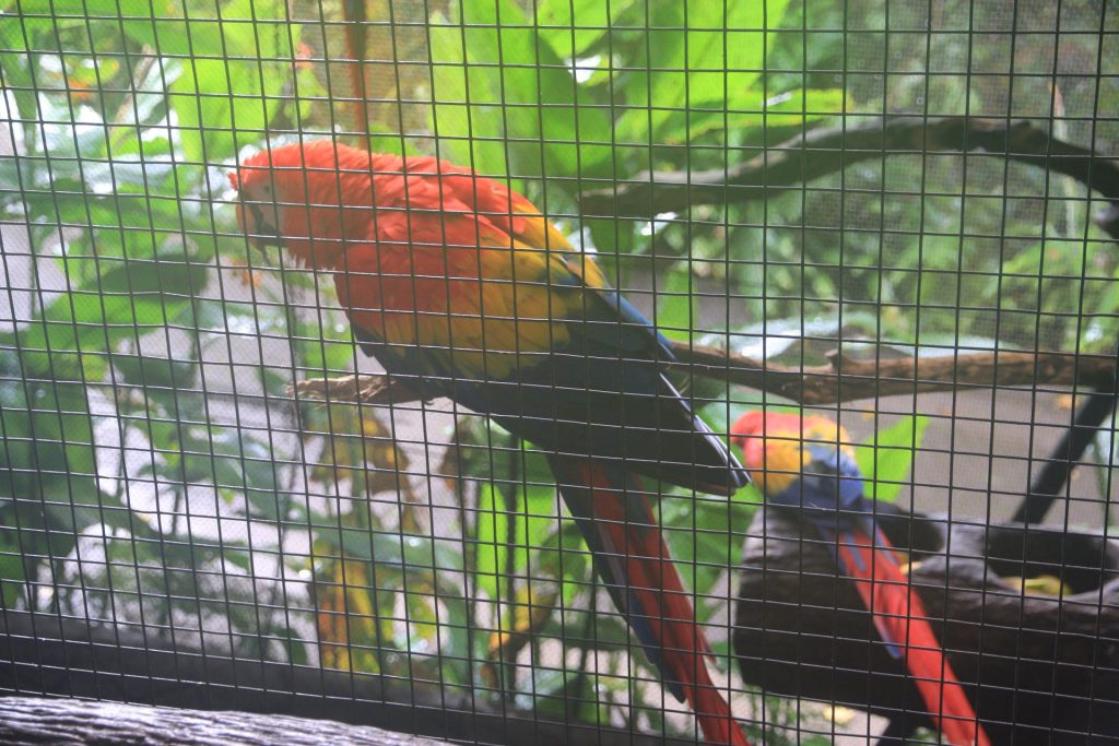 Damit der Tag nicht gänzlich ins Wasser fällt, standen dann noch die La Paz Waterfall Gardens an. Schon reichlich teuer im Eintritt, aber dafür mit dem Versprechen Costa Rica nochmal auf einem Gelände zusammenzufassen. Posthum würde ich dem auch nicht widersprechen. Vorab: Laut diversen Infoschildern sind alle Tiere auf dem Gelände irgendwoher gerettet worden und nicht mehr fähig ausgewildert zu werden. Dass das teilweise weit interpretiert wird, zeigt sich an Tieren, die aus anderen Zoos gerettet wurden.