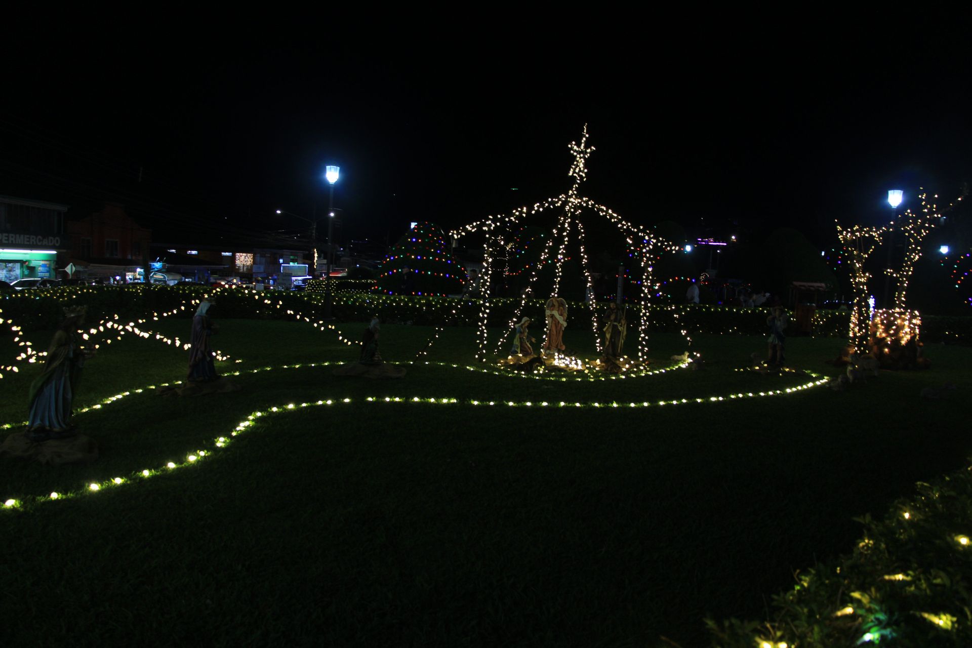 Auf dem Weg liegt dann noch Zapote. Hier gibt es einen netten Park, mit zu Figuren geschnittenen Büschen. Das sieht nicht nur tagsüber ganz nett aus, sondern auch nachts, wenn es wieder als Weihnachtsmarkt beleuchtet wird. Dieses Mal ist das Ganze dann aber deutlich näher am deutschen Weihnachtsmarkt mit Fressbuden (ok, das meiste, was es dort gibt, ist dann doch leicht anders) und einer Hüpfburg für die Kinder (mit geschätzt 50m Schlange davor). Dafür gibt es dann aber auch eine erleuchtete Darstellung der Weihnachtsgeschichte. Wenn man also von den Temperaturen absieht, schon fast wie daheim.