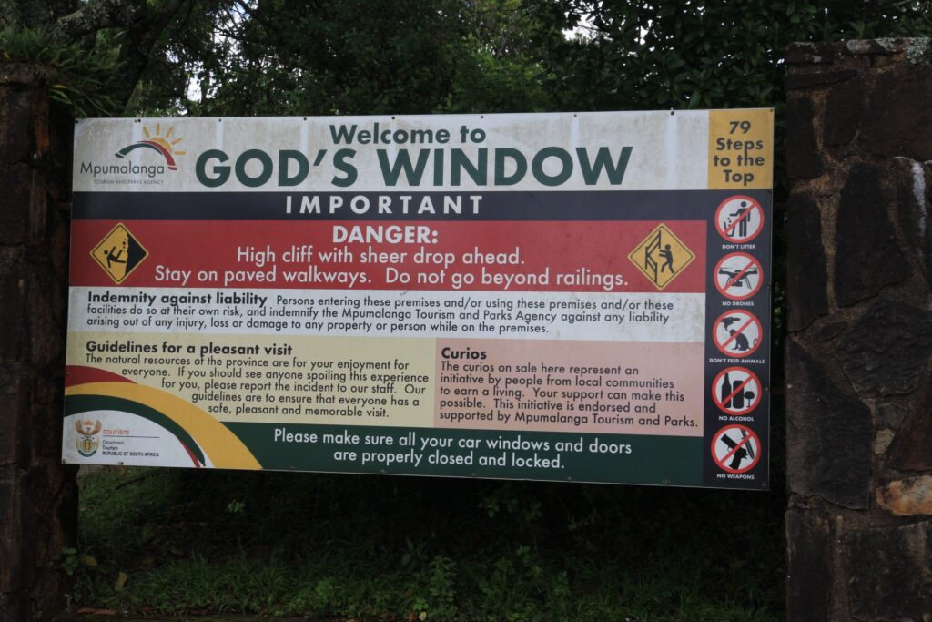 Kurz nach dem ersten kleinen Regenschauer und -bogen, kamen wir dann noch an God’s Window vorbei. Grundsätzlich nette Aussicht und ein paar Meter zu laufen. Hier dann auch noch am lebenden Beispiel, warum an den meisten Parks ein Schild mit der Aufschrift “no alcohol beyond this point” hängt. Es kamen uns doch diverse Menschen mit Bechern in der Hand entgegen, die doch übermäßig gut drauf zu sein schienen. War aber auch der erste Punkt, bei dem offensichtlich nicht nur ausländische Touristen zugegen waren.