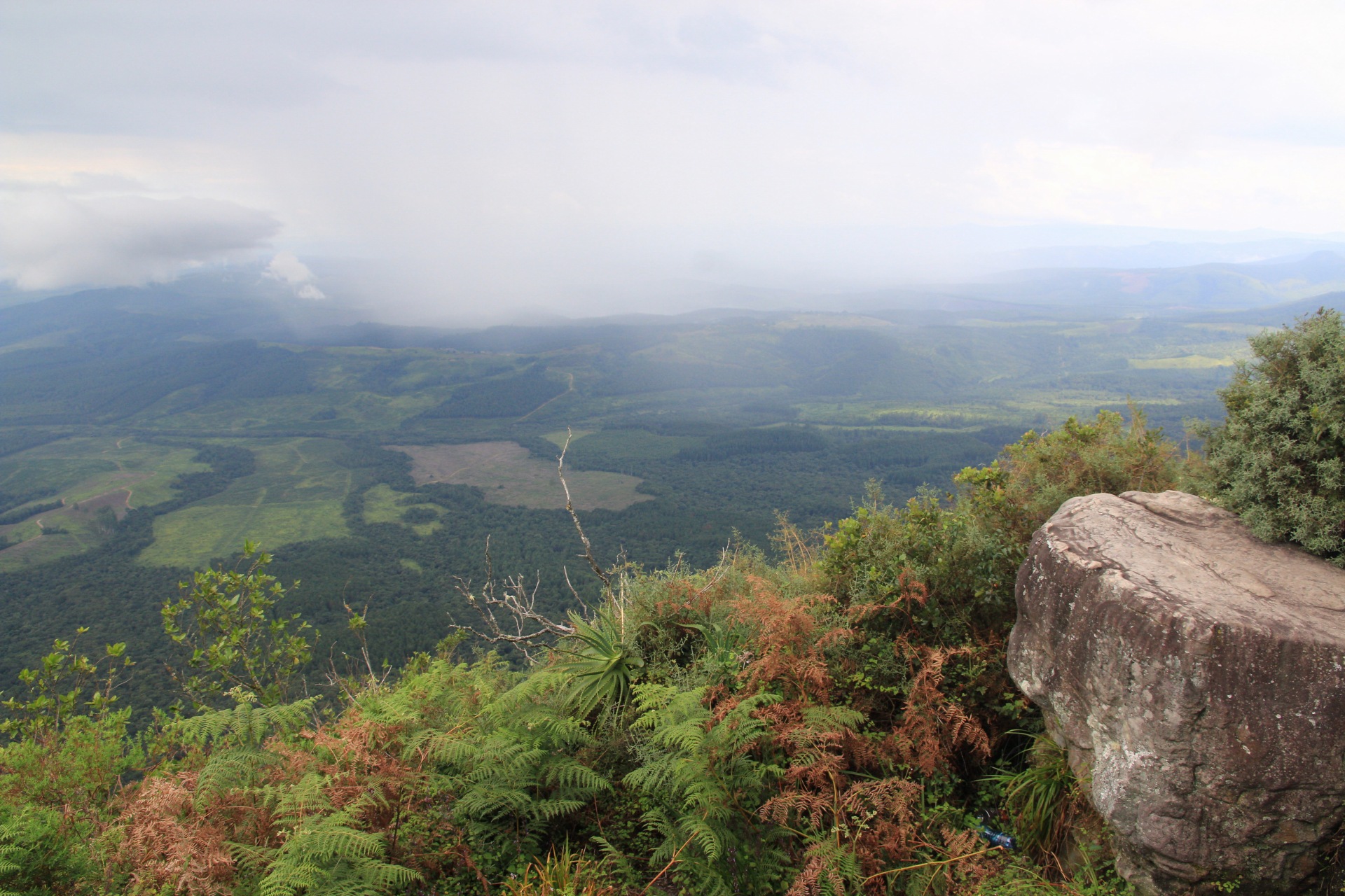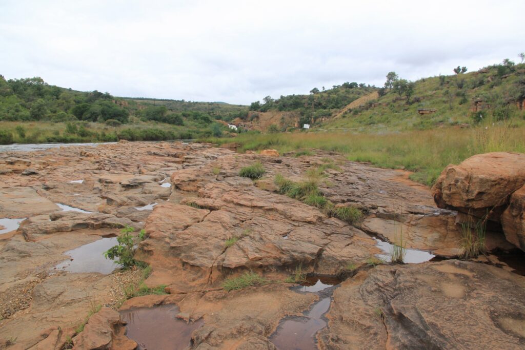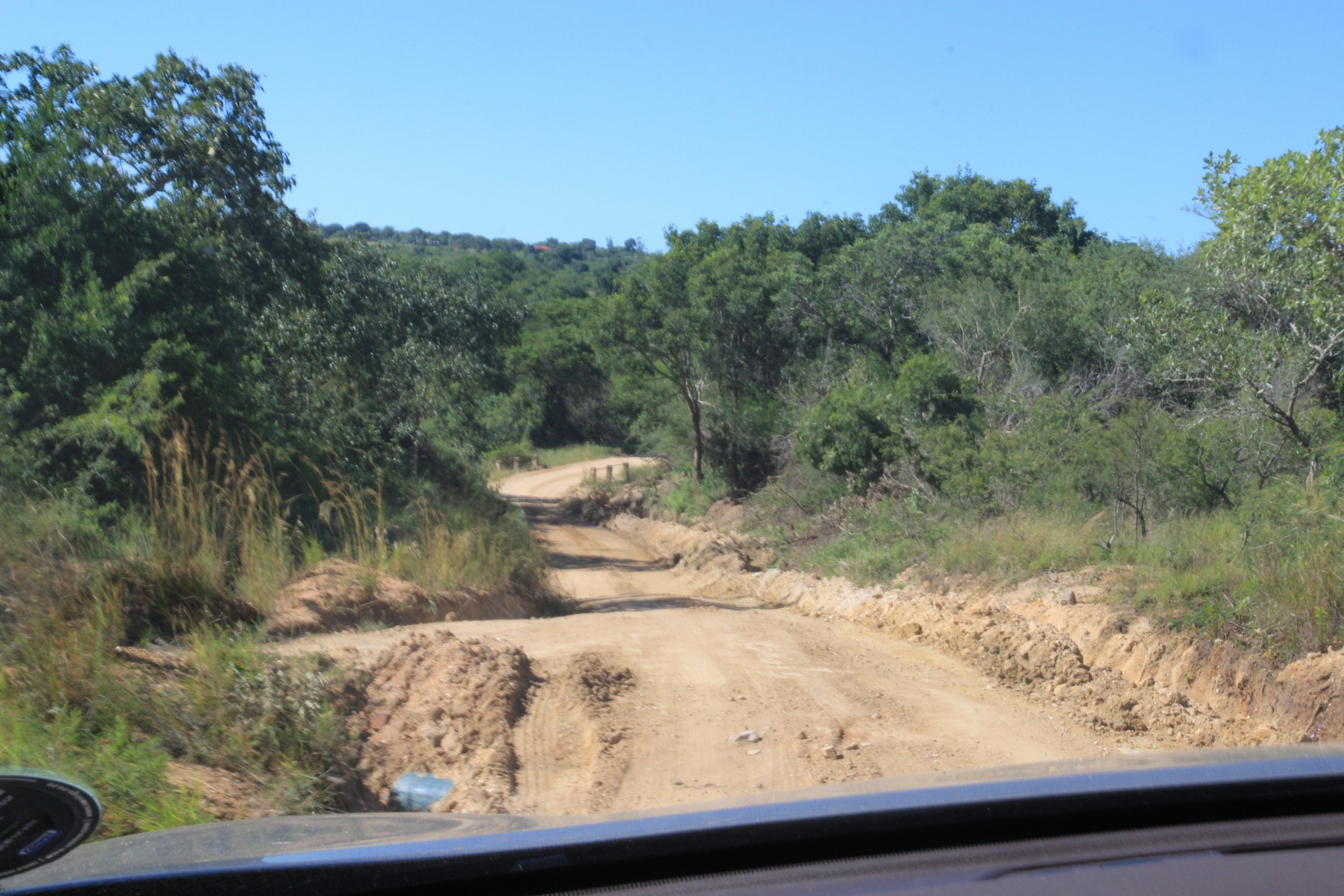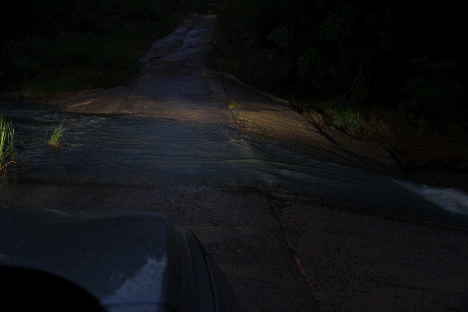 Auf der Fahrt zum WITS kamen die dunklen Wolken noch einmal zu voller Geltung und wir waren streckenweise mit eher weniger Aussicht gesegnet, wenn man von der Wasserwand absieht, die sich vor uns ergoss. Spannend wurde es, als uns die Nachricht erreichte, das das Tor vor dem WITS um 1800 geschlossen würde. Zu dem Zeitpunkt war es noch mehr Weg als Zeit und etwas feucht ums Auto herum. Da versucht man dann ungeachtet der streckenweise löchrigen Straße das geltende Tempolimit auszureizen. Mit dem entsprechenden Geisteszustand (man erinnere sich, dass es zum Abschluss im Krüger Park noch eine morgendliche Tour gab. Das heißt aufstehen um 0330, damit man rechtzeitig zum Start da ist) gibt das doch ein interessantes Fahrgefühl. Irgendwann kam dann eine Korrektur: Schließzeit doch um 2200 – da war es dann aber auch nicht mehr weit. Zum Abschluss dann noch etwas Feldweg, weil zwischen Tor und Unterkunft immernoch einige Meter liegen. Ankunft dort war dann final grob 1830 – viel zu spät wären wir also nicht gewesen.
