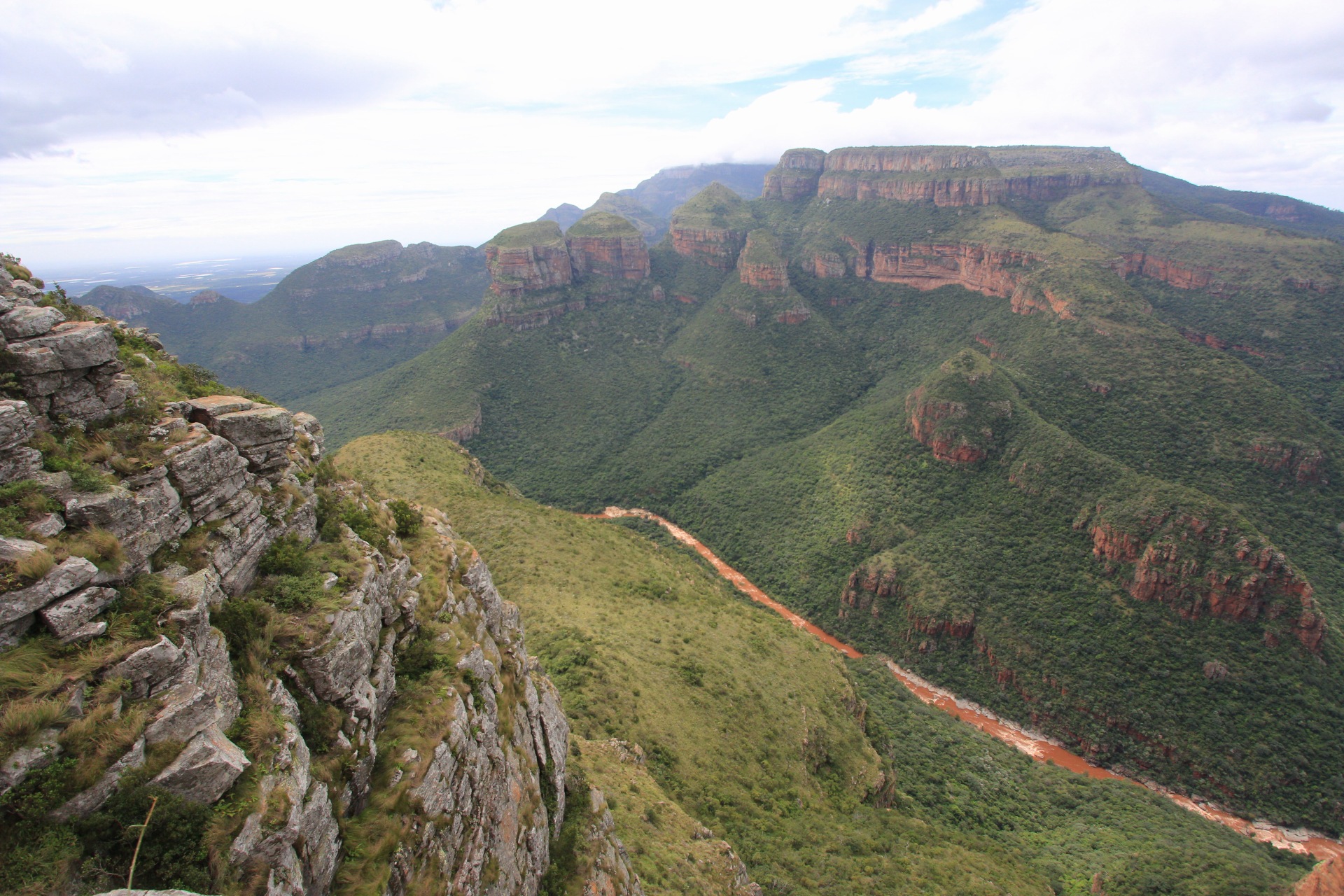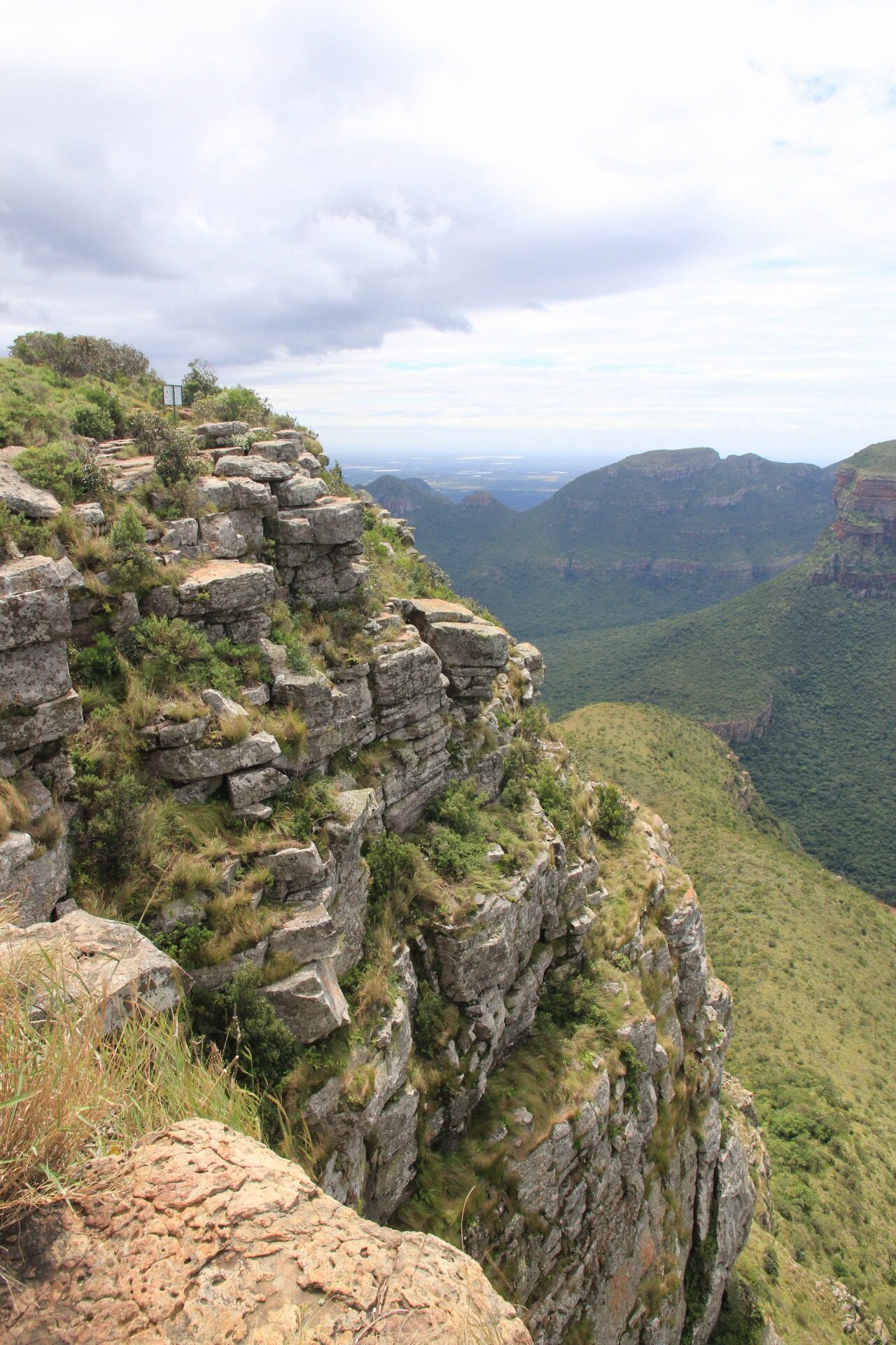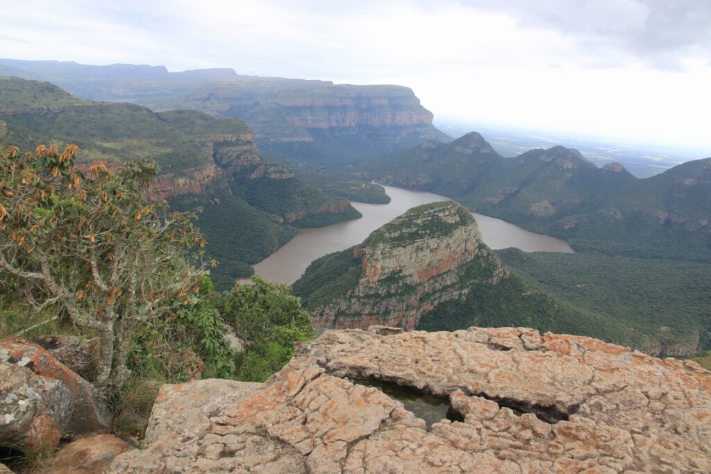 Um den Blyde Canyon noch einmal richtig zu würdigen, sind wir Sonntags noch einmal dorthin zurück gefahren. Wetter war dieses Mal deutlich besser. So war der erste Stopp nun der Drie Rondavels Lookout mit Blick auf den Blyderivierpoort Dam und zugehörigen Stausee. Reichlich windig mit vielen Absprungpunkten in den Canyon, aber trotz diverser Wolken ein schöner Blick auf die umliegende Berge.