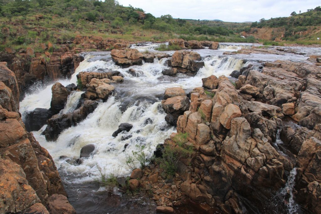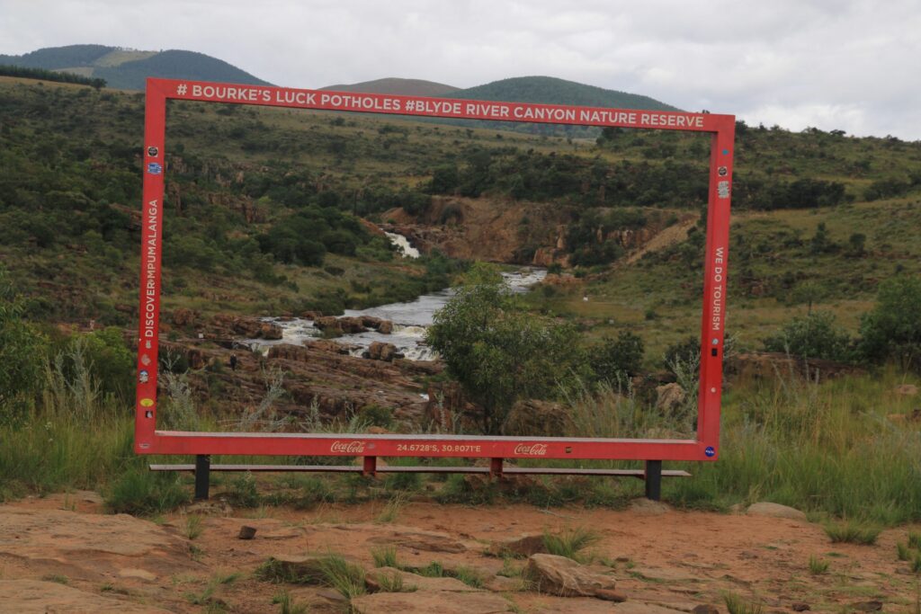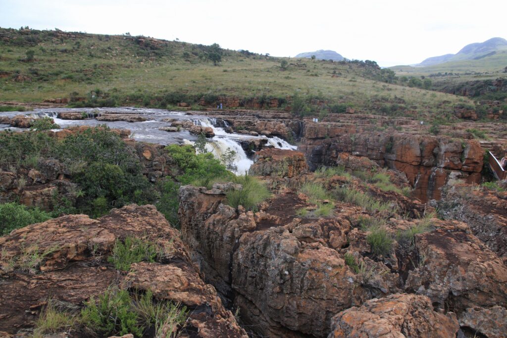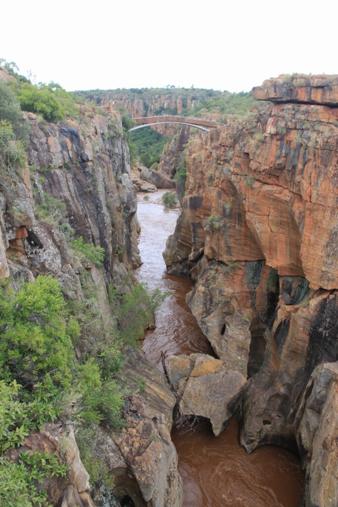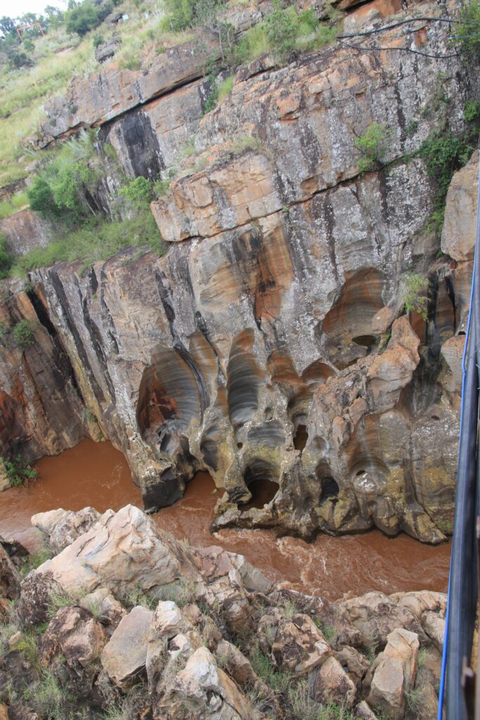 Zweiter Halt waren dann Bourke’s Luck Potholes. Im Wesentlichen eine kleine Schlucht mit Wasserfällen des Blyde River. Der Ausbaugrad ist dann doch sehr variantenreich: in Teilen ein ausgebauter wenn mit Geländer usw., dann mal nur ein Bau-Absperrband direkt vor dem Abgrund oder gleich gar nichts, was erlaubten von verbotenem Bereich abgrenzen würde.